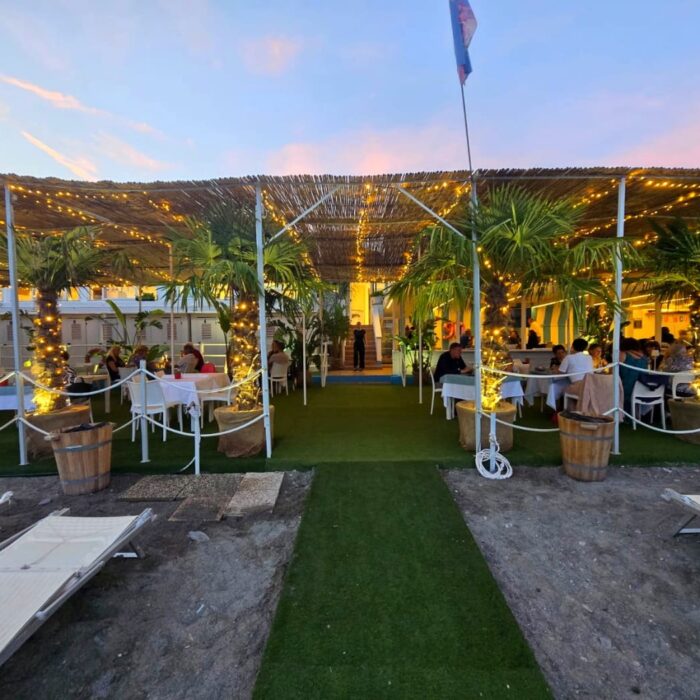 Tra palme, luci e brezza marina, sia a pranzo che a cena.