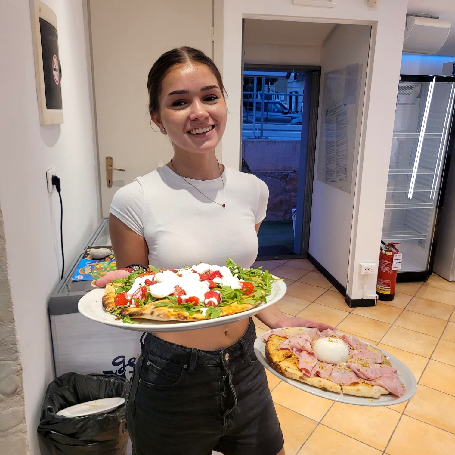 Pizza deliziosa e tante altre bontà sfornate calde.